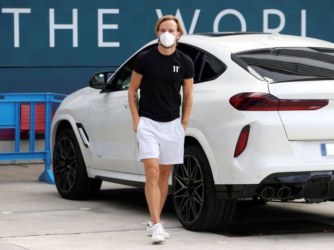 El centrocampista croata del FC Barcelona Ivan Rakitic llega para someterse a pruebas PCR del club. / FC BARCELONA /Miguel Ruiz (EFE)