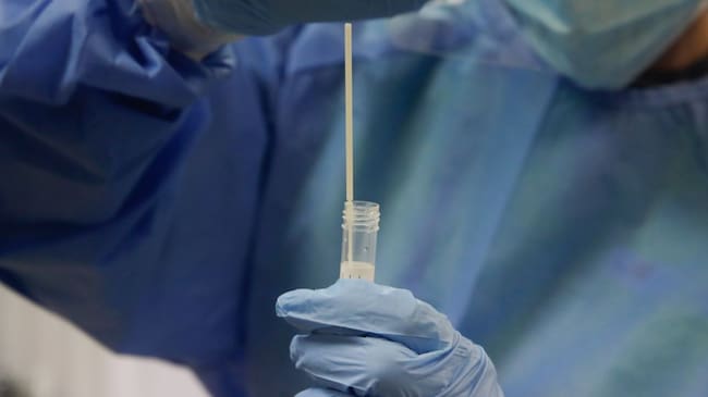 Una trabajadora sanitaria sostiene una probeta con una prueba PCR / Ricardo Rubio - Europa Press (EUROPA PRESS)