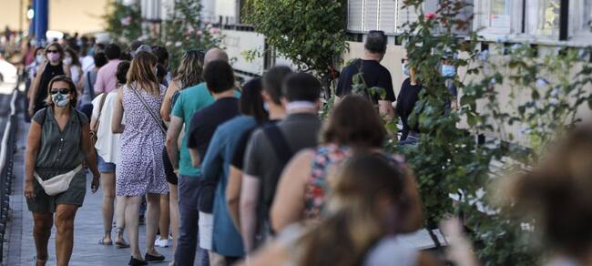 Varios docentes y personal administración hacen colas en las inmediaciones del IES María Zambrano para realizar los test serológicos del coronavirus en Leganés (Madrid) / Jesús Hellín (EUROPA PRESS)