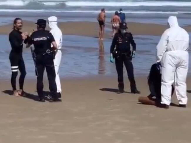La mujer hizo caso omiso a las indicaciones de los agentes, hasta que, una hora después acabó saliendo a la playa, donde le esperaban varios agentes uniformados y al menos cuatro policías provistos con buzos y material de protección para detener a la infractora sin riesgo de contraer la enfermedad, tal y como se aprecia en un vídeo publicado en las redes sociales.