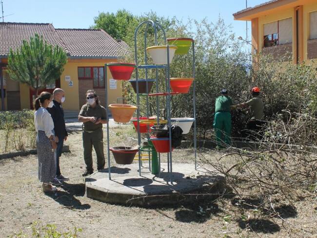 Las intervenciones se están llevando a cabo tanto en la entrada del centro como en los taludes exteriores, con el objetivo de que este espacio esté en buenas condiciones ante el inminente comienzo del curso escolar.