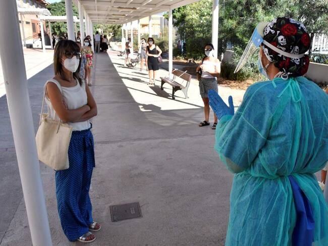 Una enfermera da indicaciones a un grupo de maestros. / Carlos Barba (EFE)