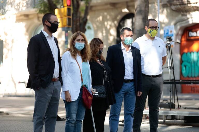 Representants dels partits polítics de l'Ajuntament de Barcelona encapçalats per Ada Colay a l'ofrena floral