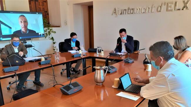 La Junta del Patronato de la UNED de Elche ha celebrado su reunión anual preparatoria del nuevo curso, a la que asistió el alcalde de Elche, Carlos González como presidente de dicha Junta, acompañado del director en funciones de la UNED de Elche, José Brotons, entre otros.