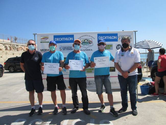Tres primeros clasificados junto con el Presidente del Club José Antonio Estruch y José Luis del Cerro, adjunto a presidencia / Club Deportivo de Pesca Gandia
