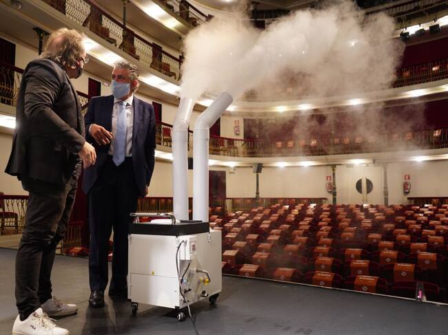 El Juan Bravo en cumplimiento de las normas sanitarias ha adquirido una máquina de nebulización para desinfectar la sala antes y después de cada sesión. La entrada y la salida al teatro seguirán distintos recorridos y serán escalonadas y el aforo podrá verse reducido a 85 personas de las 460 butacas existentes.