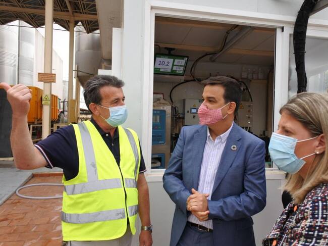 El consejero de Agricultura, Agua y Desarrollo Rural, Francisco Martinez Arroyo, y la alcaldesa de Tomelloso, Inmaculada Jiménez, durante la visita las instalaciones de la Cooperativa Vinícola de Tomelloso / Cadena SER