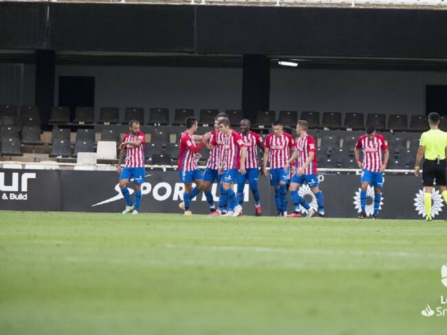 Los jugadores del Sporting celebran el gol de Gragera en Cartagonova. / LaLiga.com