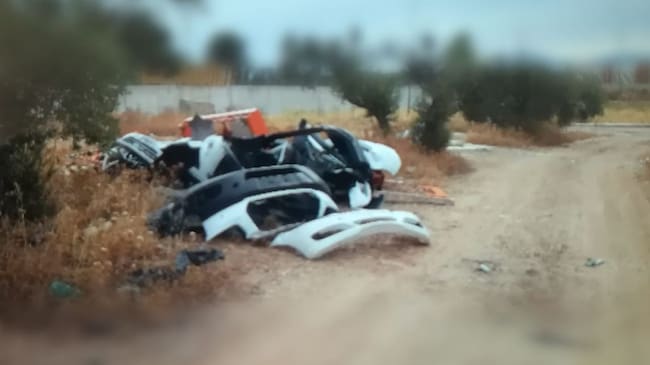 Paragolpes en una zona de cultivo depositados, presuntamente, por el dueño de un taller cercano. / Ayuntamiento de Jaén
