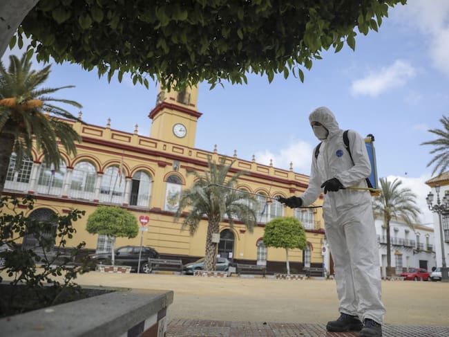 Personal del Ayuntamiento desinfecta una plaza durante el período de confinamiento en el estado de alarma por coronavirus, covid-19(EUROPA PRESS (archivo))