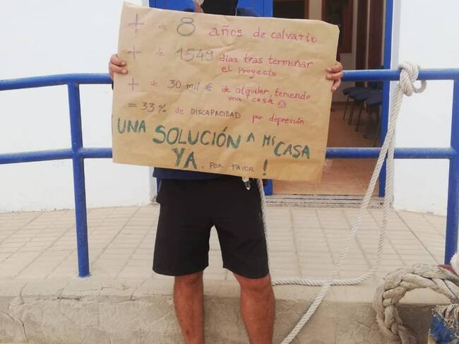 "Desde el 'paraiso' de la Isla de La Graciosa, llevo 11 años esperando una licencia de construcción para mi primera vivienda de autoconstrucción. Mientras, he pagado más de 30 mil euros de alquiler. Desde los 14 años llevo en la pesca, hasta enfermar hace 5 años de una depresión por no ver solución a mi casa. Ahora vivo de una pensión mínima y tengo reconocido 33% de discapacidad. A pesar de pedir ayuda a Bienestar Social al Ayuntamiento mi caso no avanzaba. No tengo esperanza. Si alguien puede, por favor ayude para resolver la situación de mi casa".