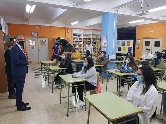 El consejero de Educación, Felipe Faci, durante su visita al IES Virgen del Pilar / Gobierno de Aragón