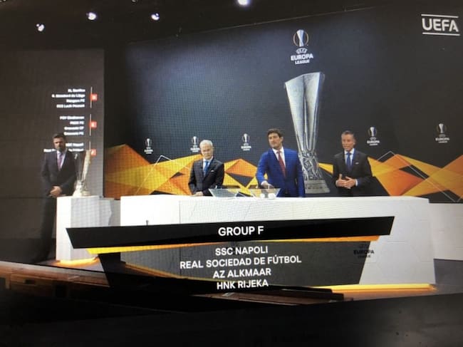 Nápoles, AZ Alkmaar y Rijeka serán los rivales de la Real en la fase de grupos de la Europa League, sorteada este viernes en Nyon. El conjunto txuri urdin, que ocupaba el segundo bombo del sorteo, regresa a Europa tres años después en un Grupo F que se presenta duro, con rivales peligrosos.