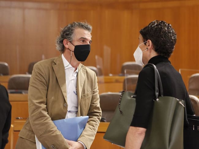 Salud Pública espera que los tests de antígenos estén disponibles la semana próxima. En la imagen, el director general de Salud Pública de Aragón, Francisco Javier Falo, y la diputada del PP, Ana Marín / Cortes de Aragón