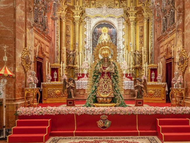 Altar mayor de la Basílica de La Macarena con la Virgen del Rosario expuesta a veneración de los fieles / @Hdad_Macarena