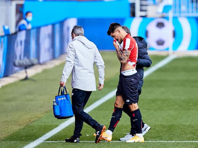 Yuri Berchiche of Athletic Club goes out injured during the spanish league, La Liga Santander, football match played between Deportivo Alaves and Athletic Club de Bilbao at Mendizorroza stadium on october 04, 2020 in Vitoria, Spain. AFP7 / AFP7 vía Europa Press (AFP7 vía Europa Press)