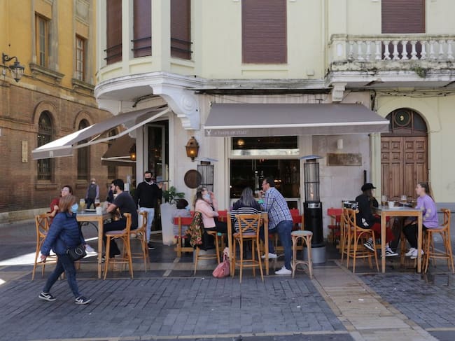 Varias personas disfrutan en la terraza de un bar en la ciudad de León, Castilla y León (España). / Secundino Pérez (Europa Press)