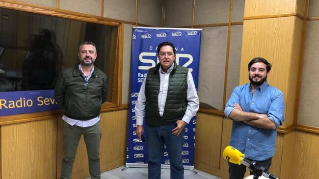 De izquierda a derecha, Paco García, Tomás Campuzano y José Manuel Peña en el estudio central de Radio Sevilla / Cadena SER