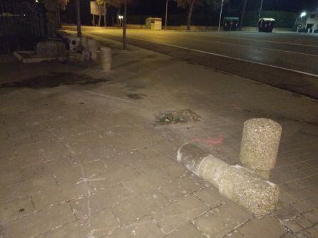Primero chocó por su derecha contra un coche aparcado y tras un brusco giró a la izquierda inavadió la acera contraria y derribó dos pivotes de cemento de la entrada del edificio municipal