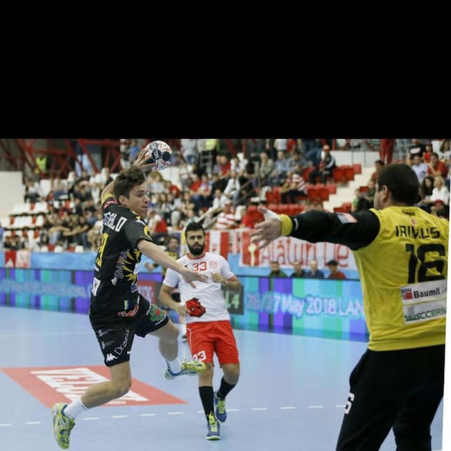 Gonzalo Pérez intenta un lanzamiento en un partido contra el Dinamo de Bucarest / Radio León/Cadena SER