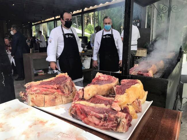 Iñaki Larrainzar ante las imponentes txuletas vascas, el plato fuerte de las jornadas gastronómicas en El Faro de El Puerto / Cedida