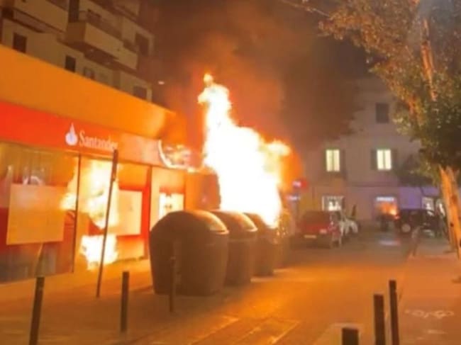La Policía Local también tuvo que colaborar con los bomberos para sofocar varios incendios provocados que finalizaron con el resultado de tres contenedores de basura y un cajero calcinados por las llamas. La Policía Nacional se ha hecho cargo de la investigación de estos hechos.