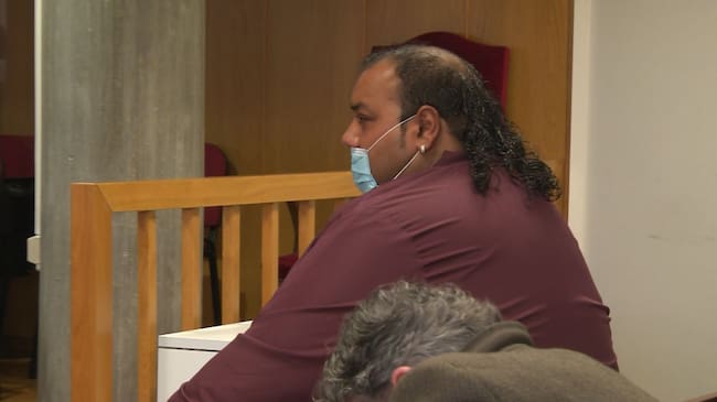 El hermano de Sonaí Giménez, Marino, sentado en el banquillo de los acusados durante su comparecencia de este lunes en donde reconoció haber participado en el robo de un alijo de medio kilo de cocaína. / Felipe Troitiño
