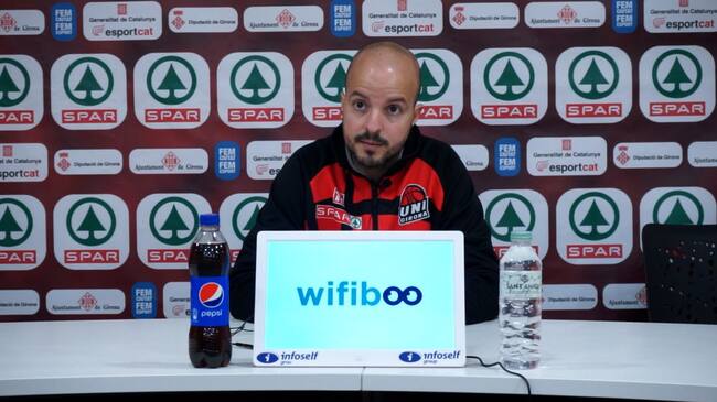 Eric Surís en una de les seves últimes rodes de premsa com a entrenador de l'Uni Girona. / Imatge: Uni Girona