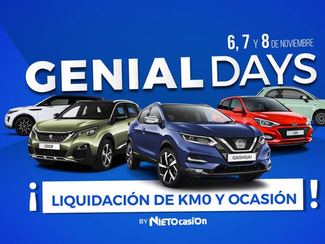 NietOcasión, perteneciente al Grupo Nieto Adame, celebra los Genial Days los días 6, 7 y 8 de noviembre, con más de 200 vehículos en liquidación de todas las marcas y con hasta un 35% de descuento