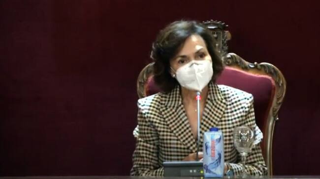 Carmen Calvo, Vicepresidenta del Gobierno, en el homenaje a Manuel Azaña en el consistorio complutense. / Ayuntamiento de Alcalá de Henares