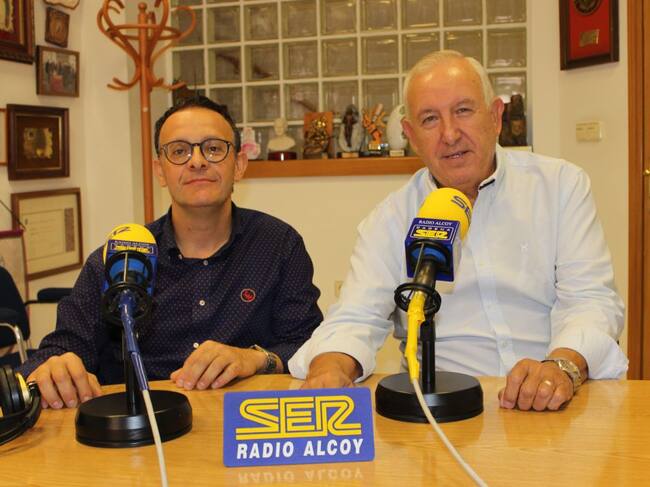 Romualdo Coderch, de blanco, en Radio Alcoy tras su designación como coordinador local de Ciudadanos en 2019 / Radio Alcoy