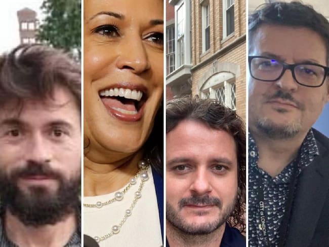 De izquierda a derecha: Jesús Sánchez (Roma); Kamala Harris, vicepresidenta electa de EE.UU.; Fernando Espi (Boston) y Alfredo Benito (Londres) / Cadena SER