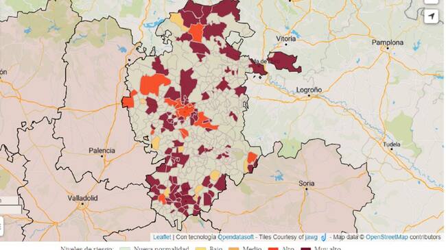 Por el contrario hay otros 16 municipios en los que todos los indicadores superan el mayor nivel de alerta por la pandemia: son Aranda de Duero, Caleruega, Fuentespina, Gumiel de Izán, Peñaranda de Duero, Vadocondes, Zazuar, Arandilla, Araúzo de Torre, Brazacorta, Huerta de Rey, Berlangas de Roa, Hoyales de Roa, Sotillo de la Ribera, Tórtoles de Esgueva, y Roa.