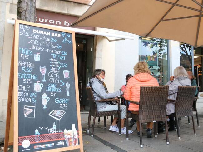 Un grupo de personas en la terraza de un bar en Girona(ACN)