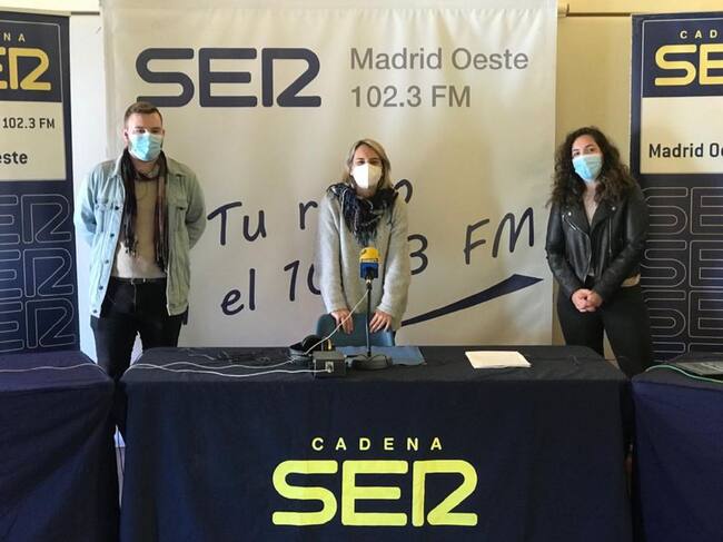 Los periodistas José Medrano y Ana Iriarte junto a la cantante mostoleña Lara Morello / SER Madrid Oeste