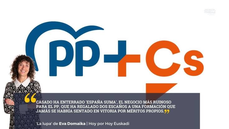Entre tanta noticia, ha pasado desapercibido que el Presidente del PP, Pablo Casado, ha enterrado 'España suma', el germen de la coalición con Ciudadanos con la que concurrió a las autonómicas de Navarra y Euskadi. El negocio más ruinoso que se recuerde para el PP vasco, que ha regalado dos escaños a una formación que jamás se habría sentado en Vitoria por méritos propios. 13.000 votos obtuvo en las generales de hace un año. El escaño de VOX es de los más baratos de la historia del Parlamento vasco y fueron 17.000, 4.000 más.