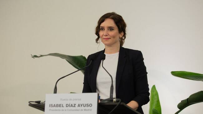 La presidenta de la Comunidad de Madrid, Isabel Díaz Ayuso, interviene en una rueda de prensa convocada en Barcelona, Cataluña. / David Zorrakino (EUROPA PRESS)
