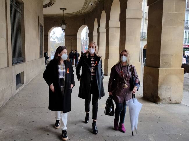 la presidenta del PP en Navarra, Ana Beltrán (centro), en Pamplona. / Cadena SER.