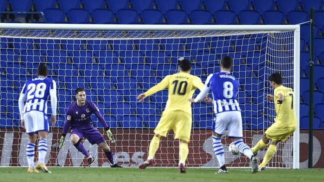 Gerard Moreno adelantó al Submarino de penalty frente a la Real Sociedad, pero Oyarzabal acabó igualando el encuentro al transformar otra pena máxima