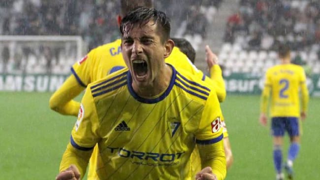 Marcos Mauro celebra un gol conseguido con la camiseta del Cádiz. / Diario AS