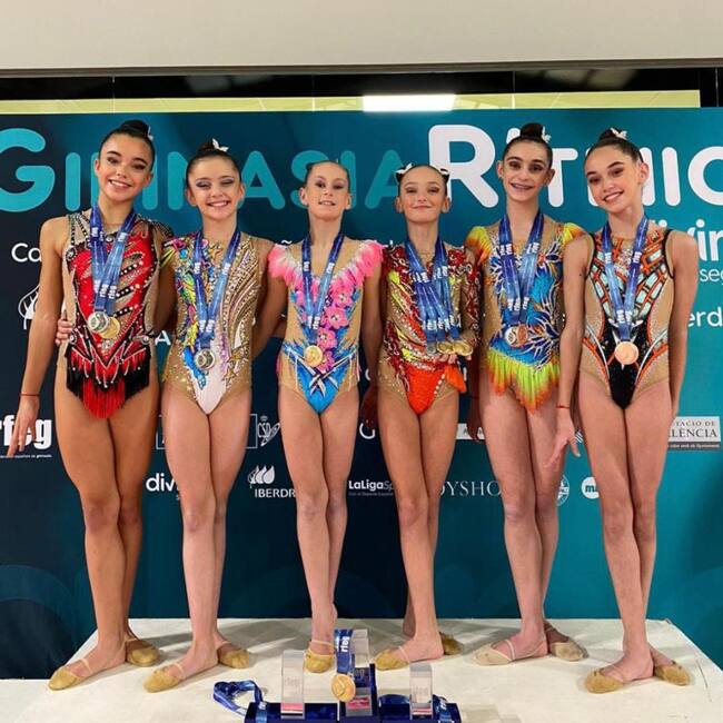 El rey de la gimnasia en España no tiene límite. El Club Ritmo, dominador nacional en los últimos lustros, se supera asímismo en el Campeonato de España de Rítmica que durante toda la semana se celebra en Valencia. Los tres conjuntos que presentaba en categoría infantil se repartieron los tres primeros puestos en una actuación inédita: el Club Ruth Ritmo (Claudia Alonso, que competía en aro y cuerda, e Irene Guisasola, en pelota), el Ruth Ritmo Sariegos (Andrea Corral en aro y cuerda y Tania Díez, en pelota) y el Ritmo.com (Marta Castillo, aro y pelota, y Aitana Bandera cuerda).