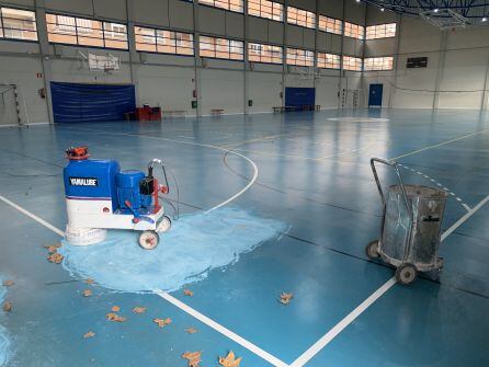 La actuación en la Pista Azul cuenta con una inversión de algo más de 36.000 euros y va a consistir en reparar las fisuras y desniveles del suelo actual, lijado de toda la superficie para eliminar suciedad y restos del sistema anterior, para mejorar la planitud y la adherencia del nuevo sistema. Una vez preparada la superficie se procederá a la aplicación de un revestimiento autonivelante y una capa final que dará color a toda la superficie tratada antes de marcar de nuevo las líneas de juego con pintura bicomponente.