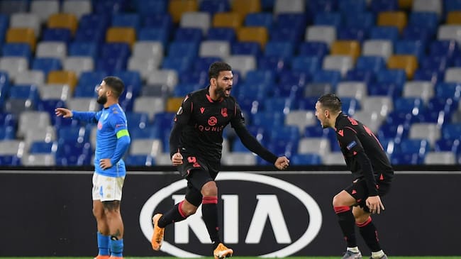 El delantero brasileño marca en el tiempo de descuento el gol del empate en Nápoles (1-1) que sirve para clasificar a los donostiarras. El Rijeka, por su parte, también ayudó ganando al AZ Alkmaar