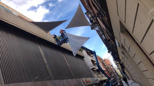 Un grupo de vecinos de varios portales de la calle Santa María de Valladolid comenzará a recoger firmas entre los propietarios y vecinos de esta céntrica vía para manifestar su queja ante la instalación de los 'toldos verdes' que se han instalado en las últimas semanas como parte de un proyecto del Ayuntamiento de la ciudad financiado por fondos europeos.