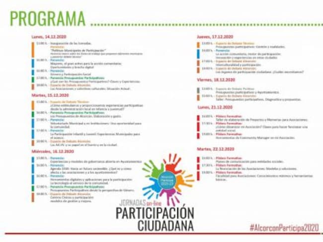 Programa de las Jornadas Online de Participación Ciudadana / Ayuntamiento de Alcorcón