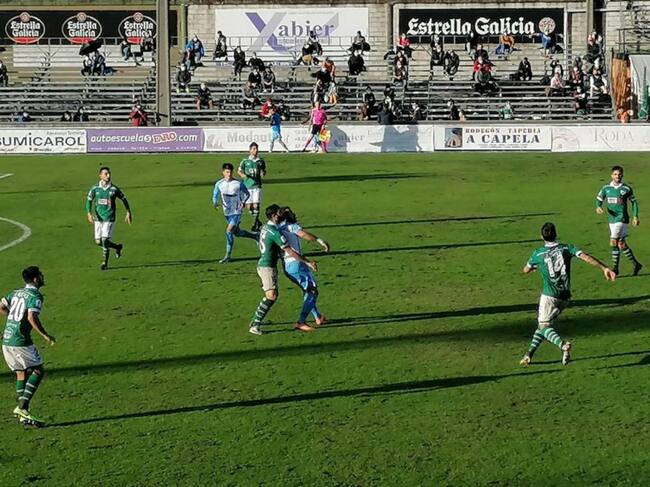Orlando Sa lucha por la posición a la espera del balón en el campo del Coruxo / Cadena SER Málaga