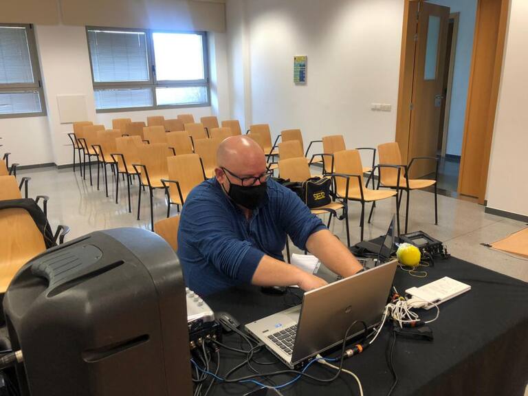 Antonio Rada, controlando la emisión del programa