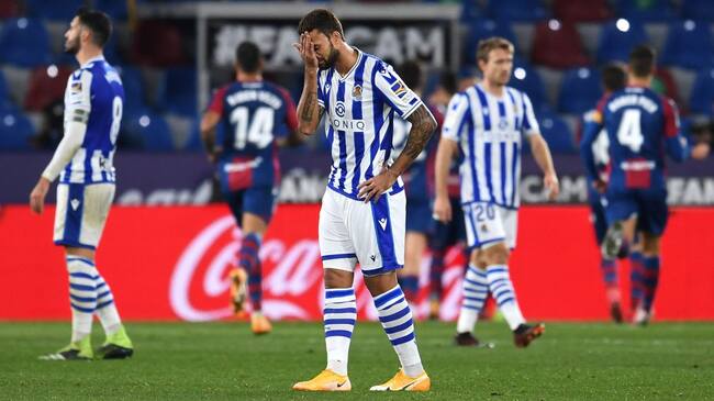 En casa del levante volvió a perder. 2-1, dejándose remontar el gol de falta de Alexander Isak, por culpa de dos errores defensivos groseros, que fueron su perdición. Y es una pena, porque los primeros 25 minutos fueron para enmarcar. Plenos de intensidad, de juego, de ritmo, de llegada, de dominio aplastante... pero sin gol. Y así es complicado. Al menos, hizo uno Isak. pero le duró poco la alegría. Un doble error de Remiro le llevó a encajar el empate demasiado pronto. El de Cascante tuvo otras acciones de mérito, pero ahí estuvo mal. Y en la segunda parte, cuando todo parecía abocado a un nuevo empate, llegó otro error defensivo. Zubeldia y Gorosabel dejaron una autopista por el centro, y De Frutos lo aprovechó para rematar al los realistas. Derrota dolorosa, por inmerecida, y porque es la segunda seguida en liga. Por lo menos, no afecta a su clasificación liguera, porque sigue segunda en la tabla con 26 puntos.