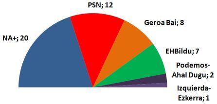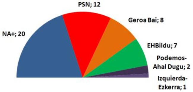 El PSN, sería el único partido que lograría más escaños, y pasaría de los 11 escaños que tiene actualmente a 12 escaños. Escaño que perdería Geroa Bai que pasaría de 9 a 8. Navarra Suma mantendría sus 20 escaños, al igual que EH Bildu con 7, Podemos con 2, e Izquierda Ezkerra con 1.