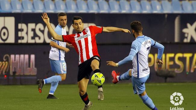 Andy disputa una pelota en La Rosaleda ante la presencia de Cristian. / UDL